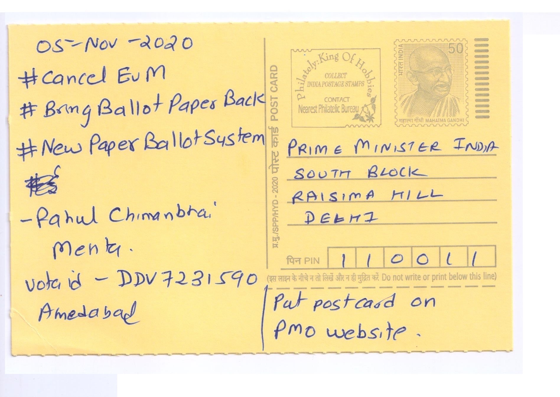EVM Hatao Mahagathbandhan, in which 39 parties submitted a letter requesting the ECI to provide voters the option for a ballot paper at polling booths. Pls see https://tinyurl.com/LetterstoEci2